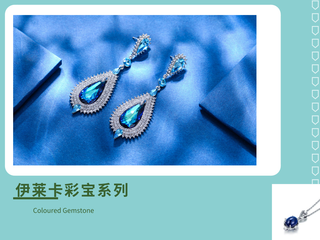 伊萊卡珠寶彩寶系列,彩寶品類豐富,有紅寶石、藍寶石、祖母綠、托帕石、海藍寶等系列種類;且款式多樣,種類豐富,不斷創(chuàng)新,迎合消費者的喜好。