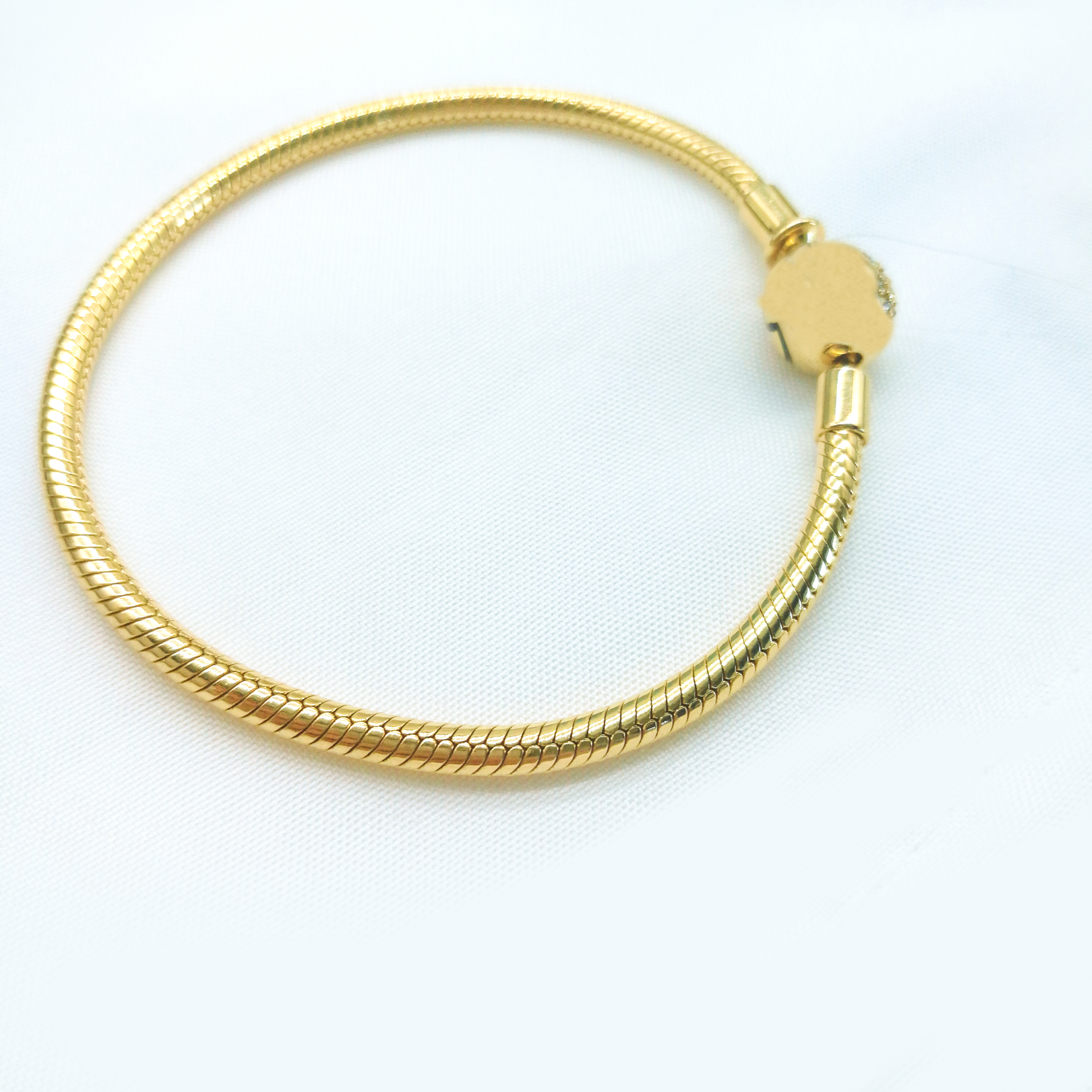 手鏈。魔幻系列的手鏈主要有兩種,一種是蛇骨鏈,一種是手鐲。蛇骨鏈材質(zhì)較軟,與手腕更加貼合,適合搭配各種珠子,是魔幻系列最常見的手鏈;手鐲比蛇骨鏈更加閃亮,適合串少量的珠子。