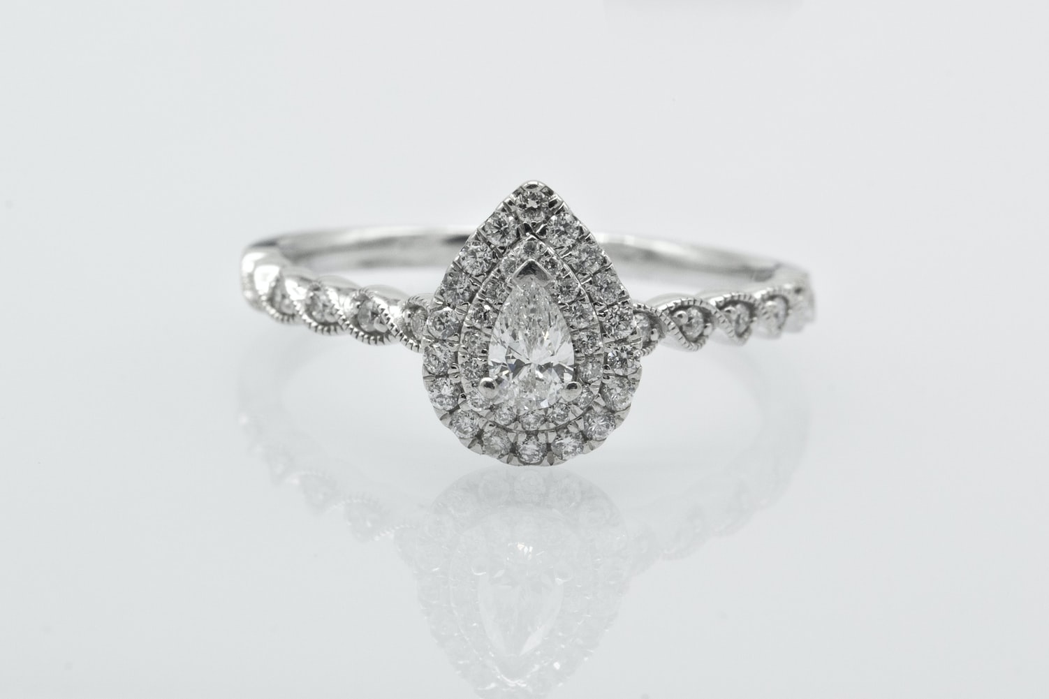 較短手指。短手指其實(shí)看著很可愛(ài),但有的手指較短的小仙女還是羨慕修長(zhǎng)一點(diǎn)的手指。那在戒指的選擇上,較短手指的小仙女們可以考慮有助于延長(zhǎng)手指的款式。如果戒指鑲嵌有寶石,寶石不宜過(guò)大,款式也不宜太夸張,可以考慮水滴型、馬眼型的寶石;在戒圈的選擇上,可以考慮較細(xì)的戒圈,如V字型或者U字型的戒圈可以讓手指看起來(lái)更加修長(zhǎng)。